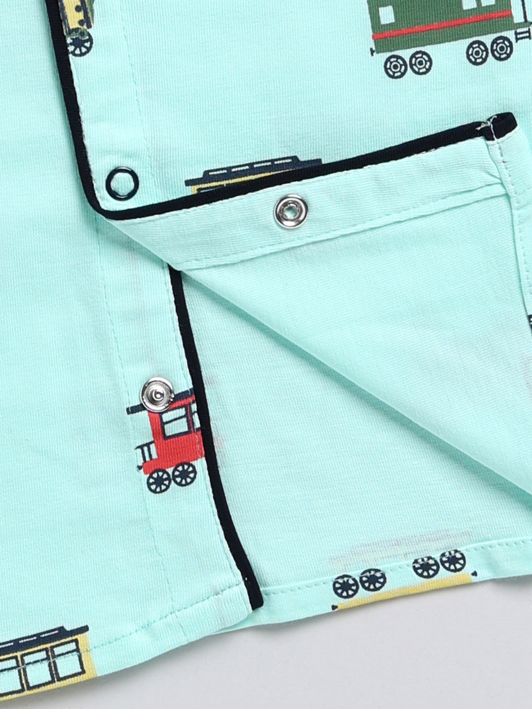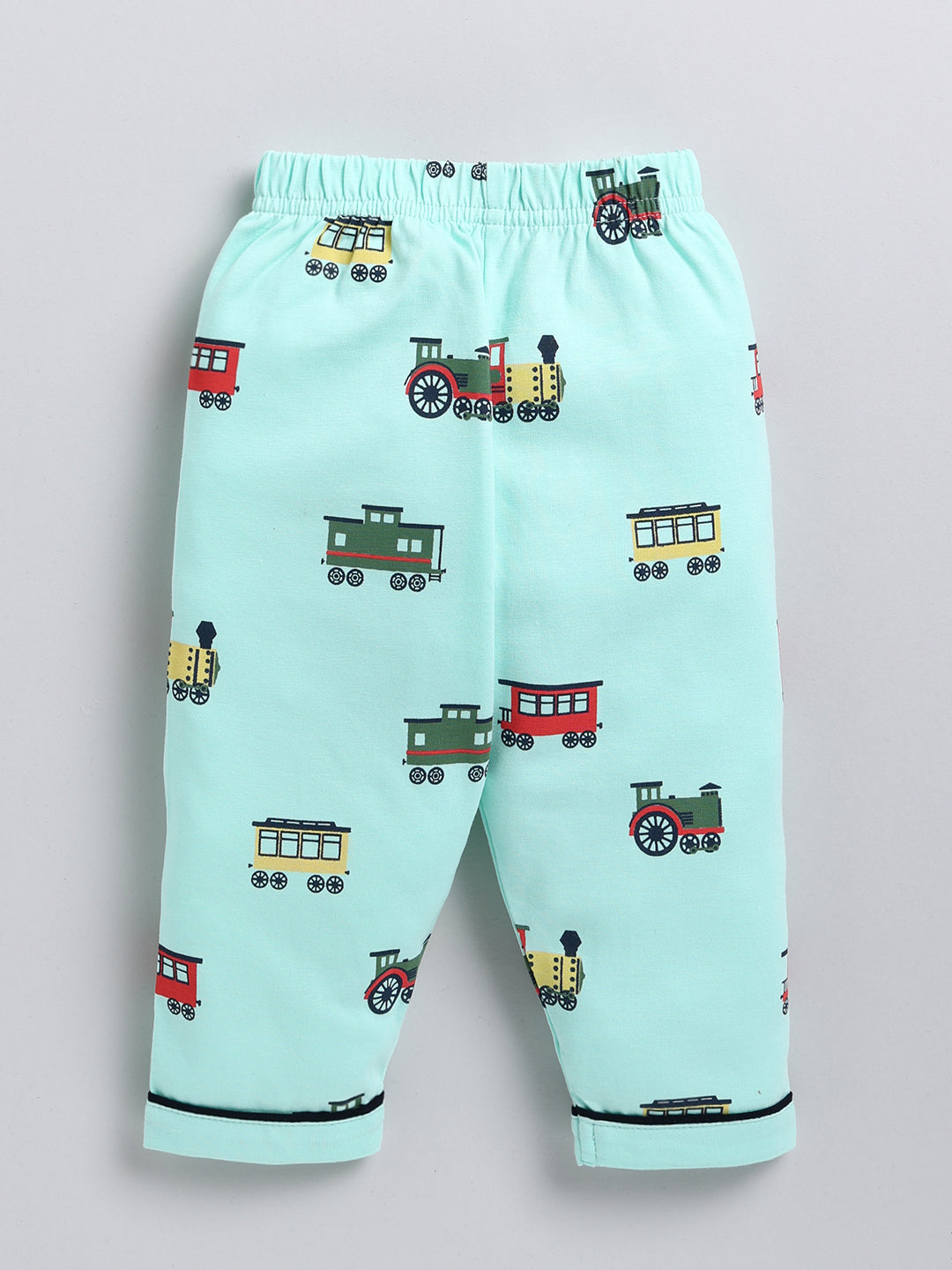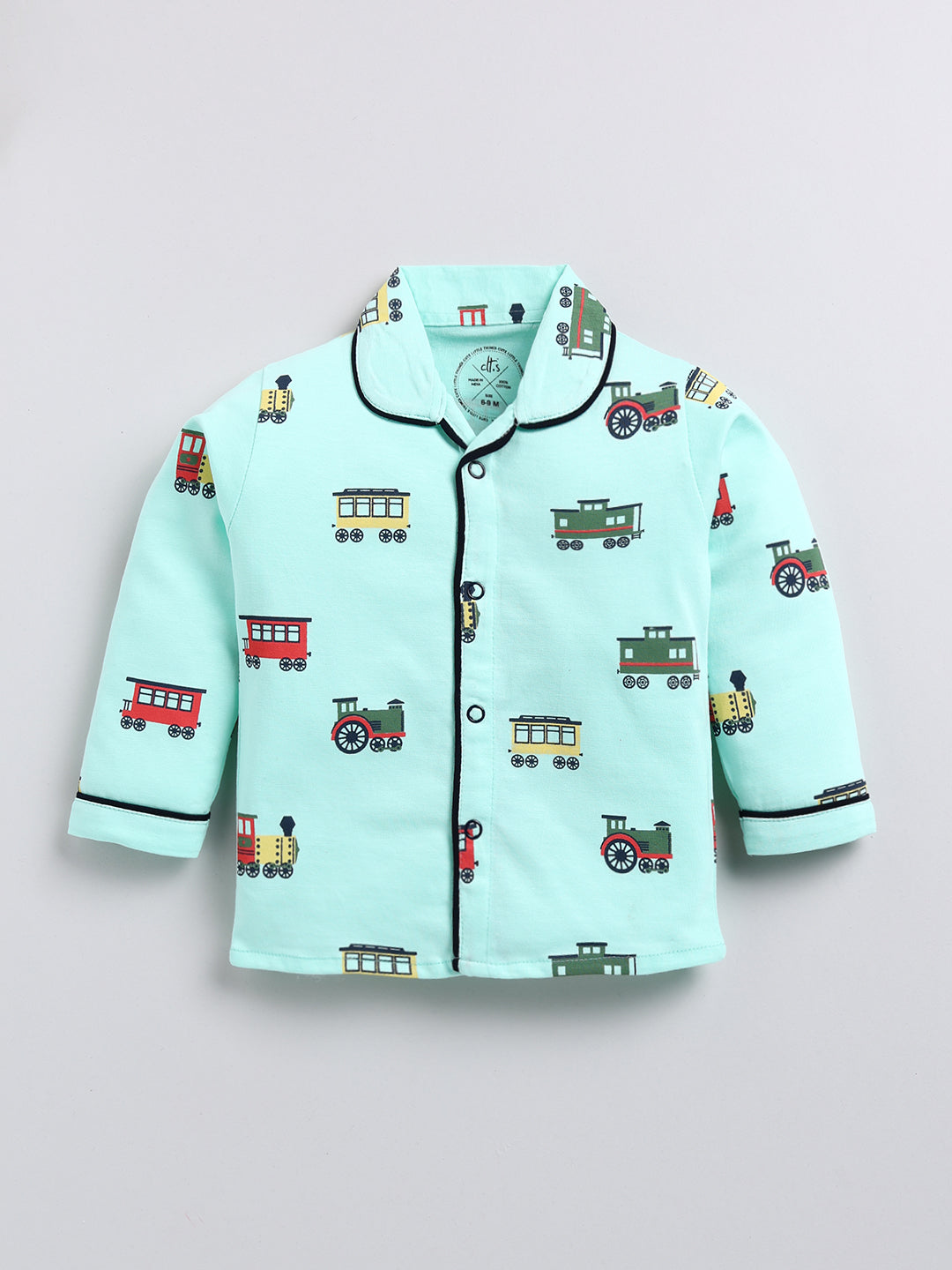 Fun and Functional: Keep bedtime fun with this functional nightwear set. Featuring playful prints and soft fabric, it ensures comfort and style for your child. The Sea Green Full sleeve Night Suit is made of 100% Cotton and has a Shirt Collar with Graphic print