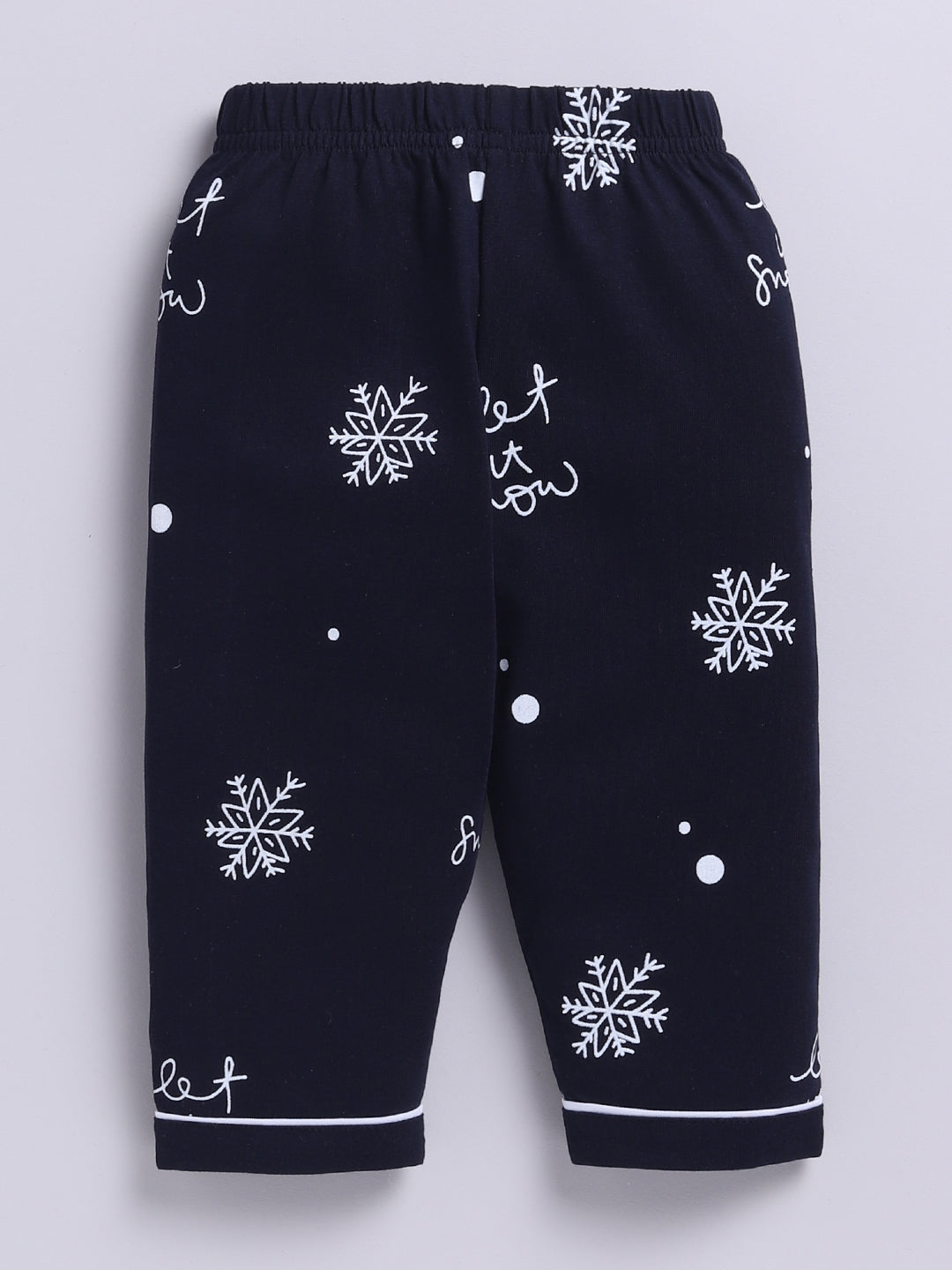 'Snowflake' Blue Cotton Knitted Full Sleeve Night Suit