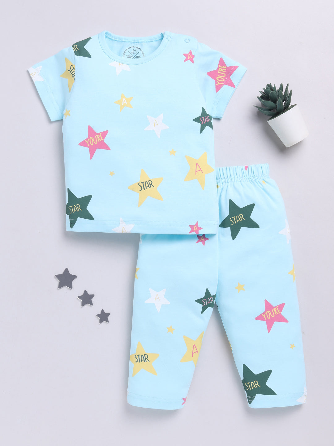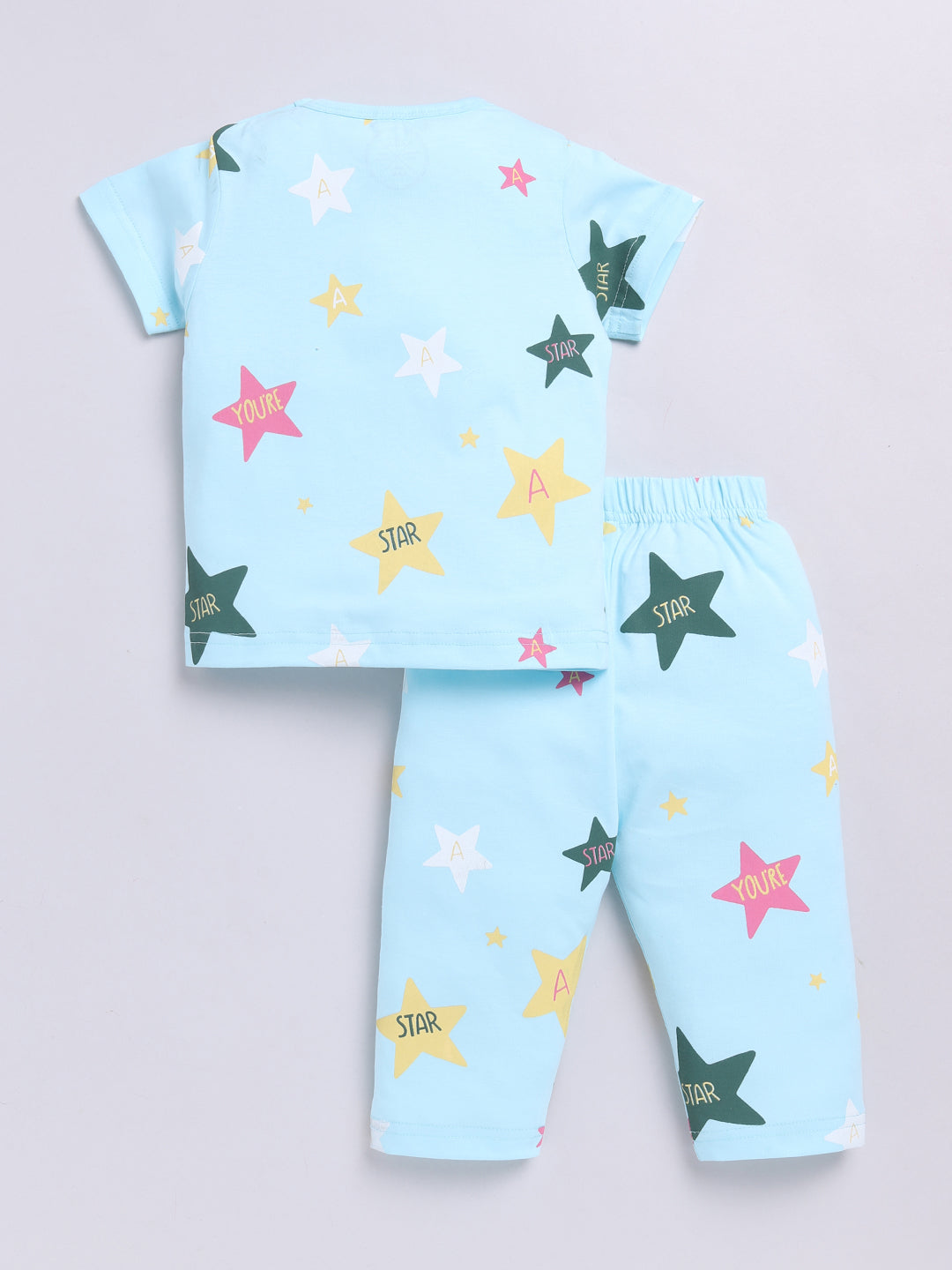 Starry Blue Cotton Half Sleeves Nightwear Set