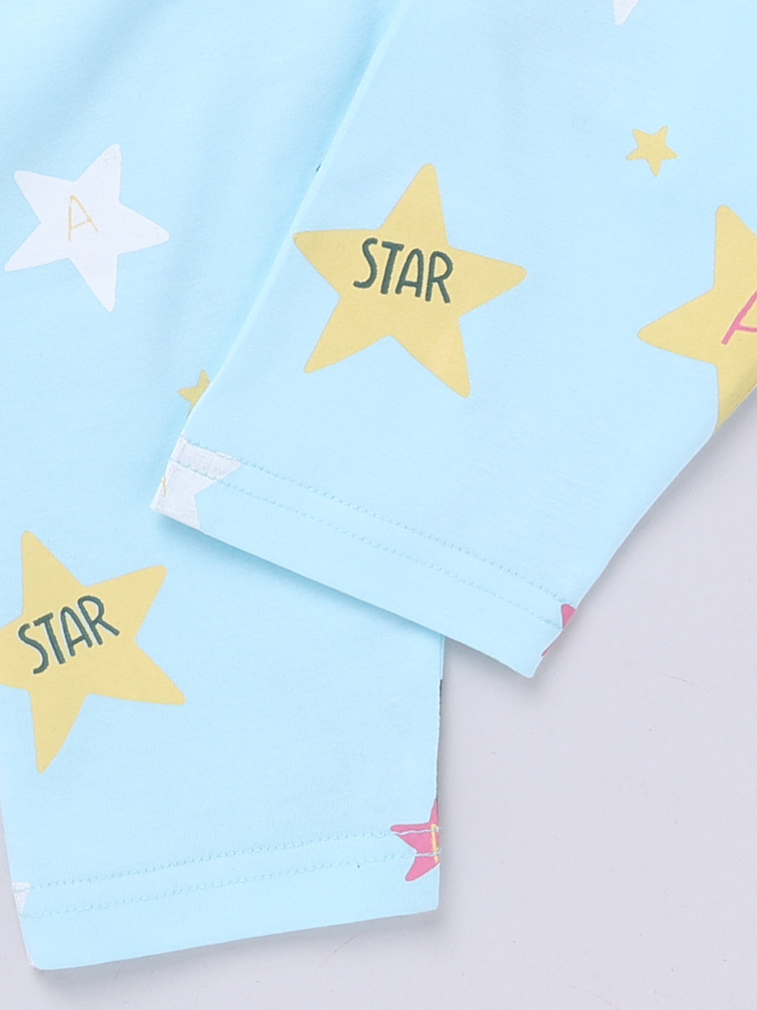 Prepare your little one for dreamland with this soft cotton nightwear. Designed for summer nights, it’s airy, breathable, and naturally cool. Gentle on the skin and easy to wear, it’s ideal for bedtime routines and peaceful rest. A practical, everyday choice for kids who love comfort. This nightwear set has a Round Neck and a Graphic print and is made of cotton Knit fabric