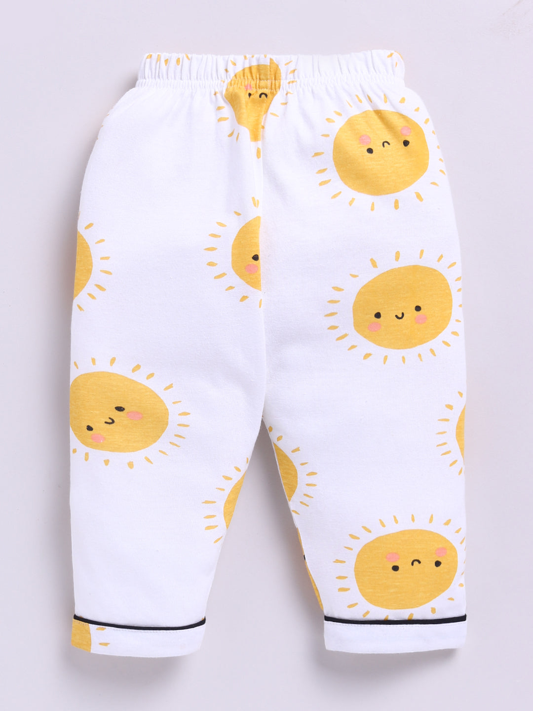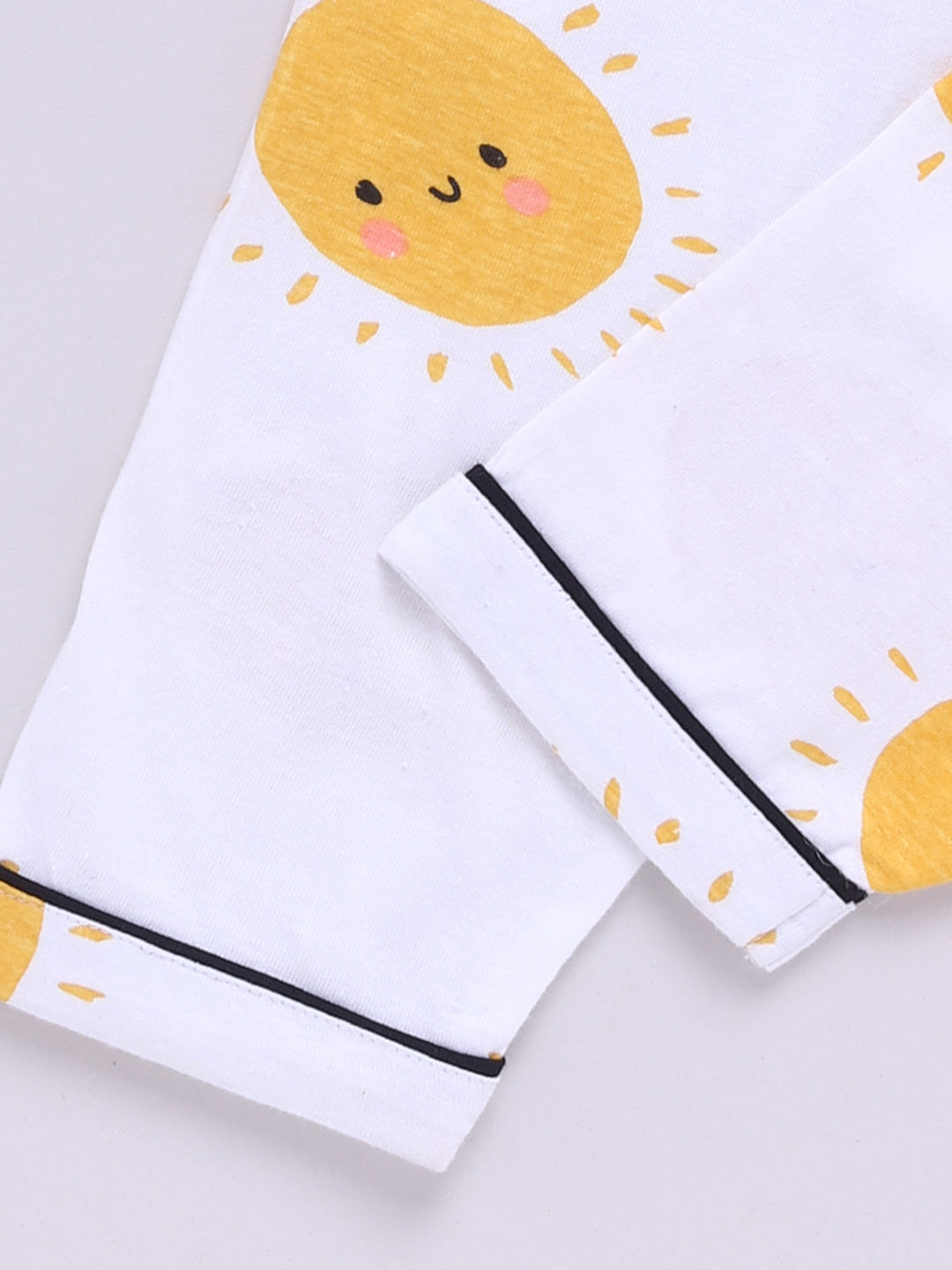'Sunny' White Cotton Full Sleeves Nightwear Set