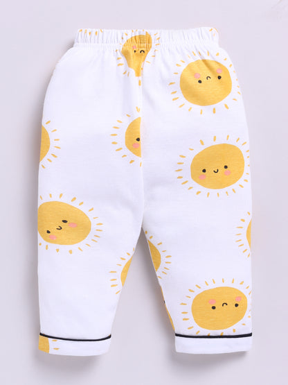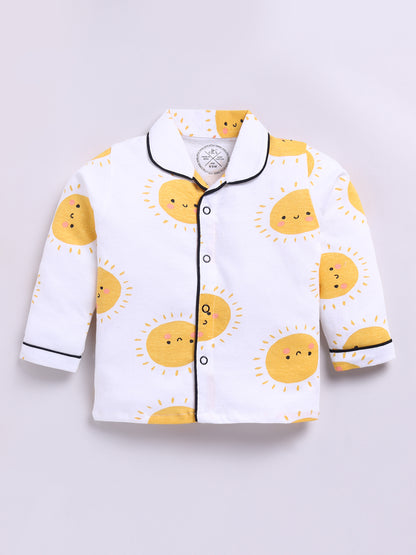 Wrap your child in comfort with this cool cotton nightwear set. The breathable fabric helps beat the summer heat, while the soft texture feels great on the skin. With its easy-to-wear design, it’s a reliable choice for restful nights and cheerful mornings. This nightwear set has a Shirt Collar and a Graphic print and is made of cotton Knit fabric