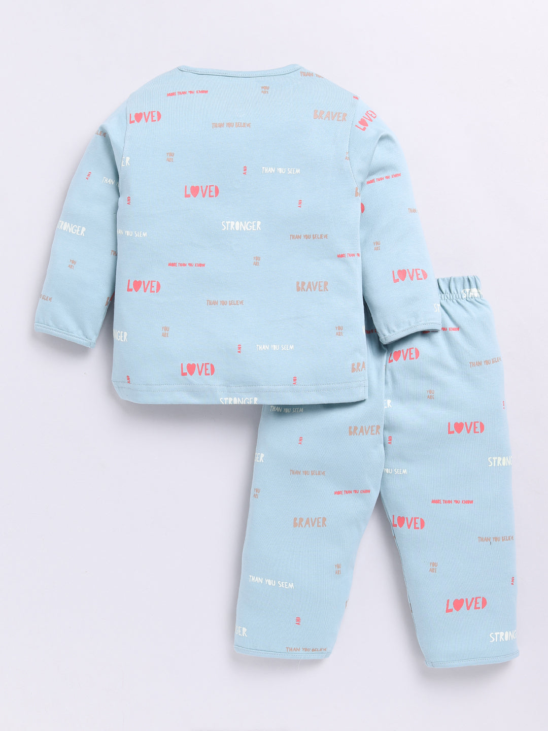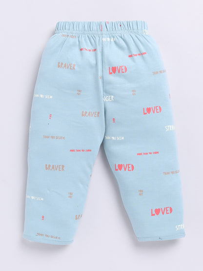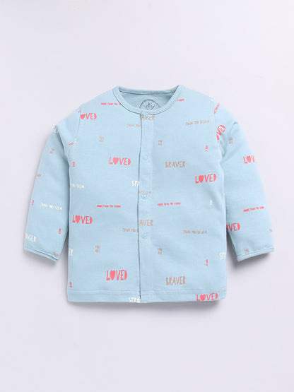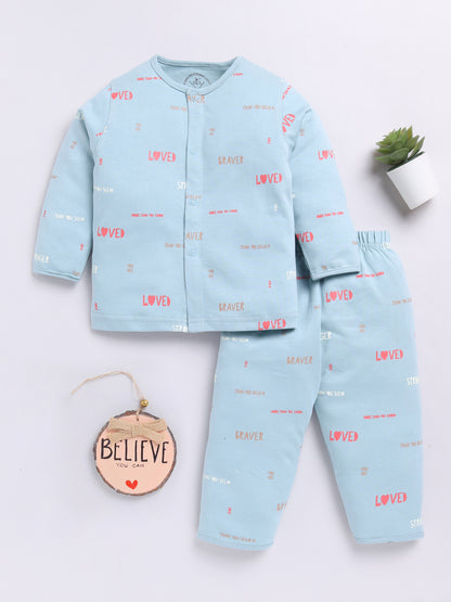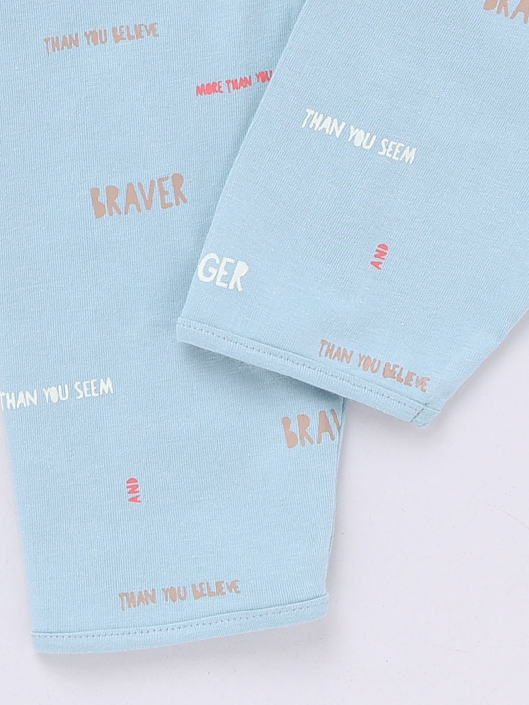 Teal Cotton Full Sleeves Typography Nightwear Set