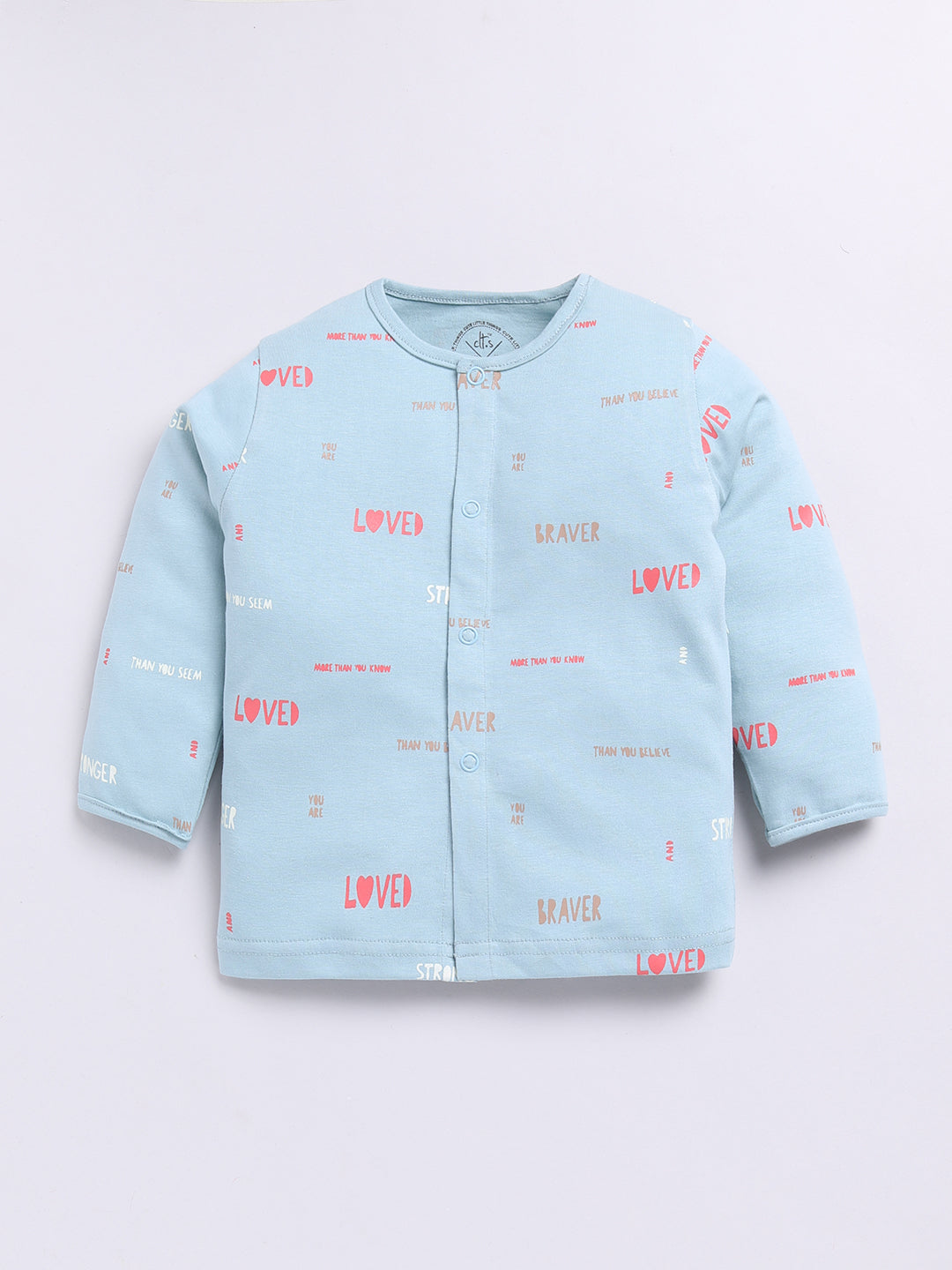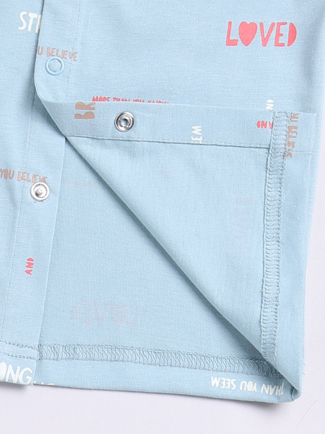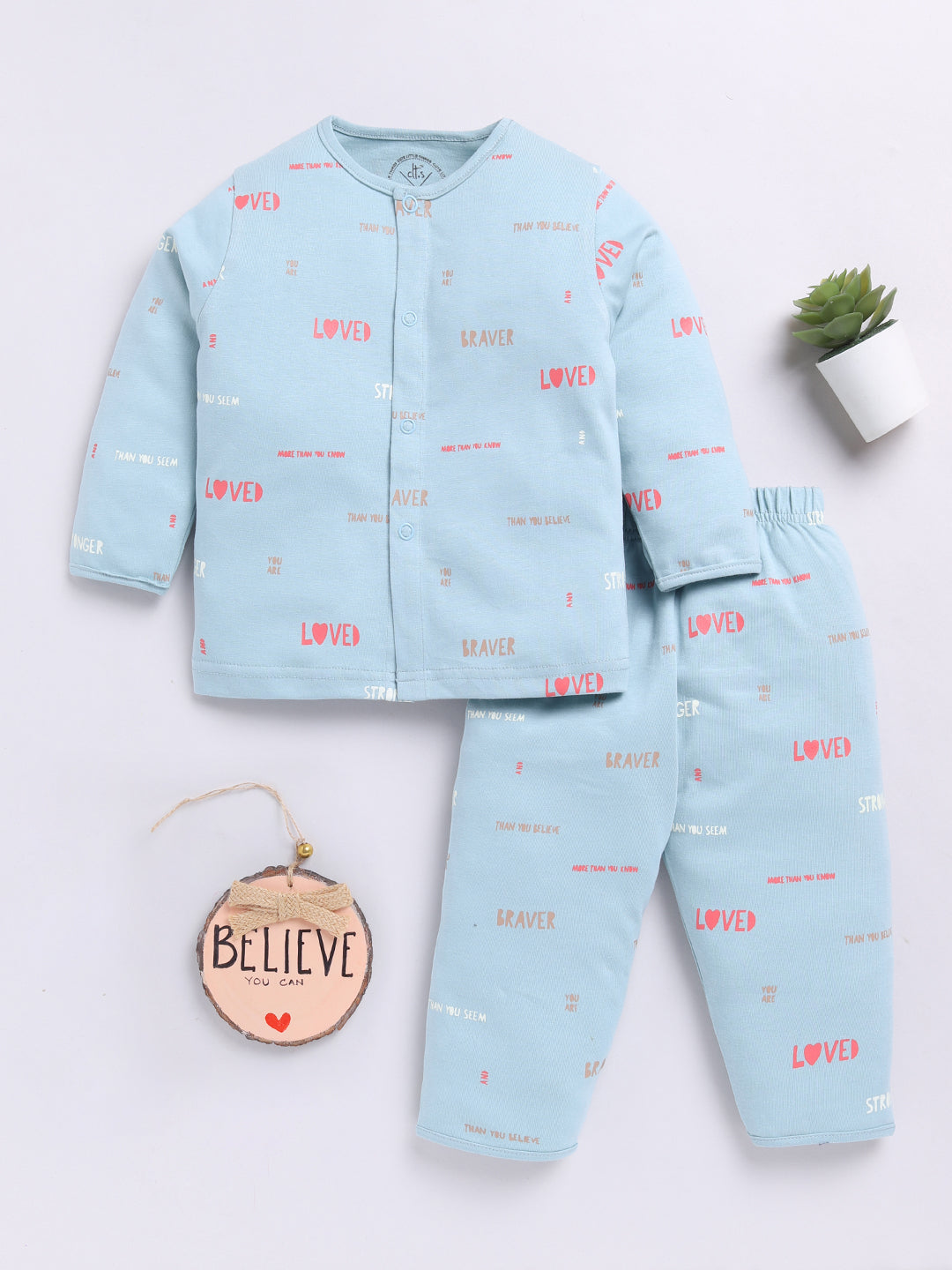 Teal Cotton Full Sleeves Typography Nightwear Set