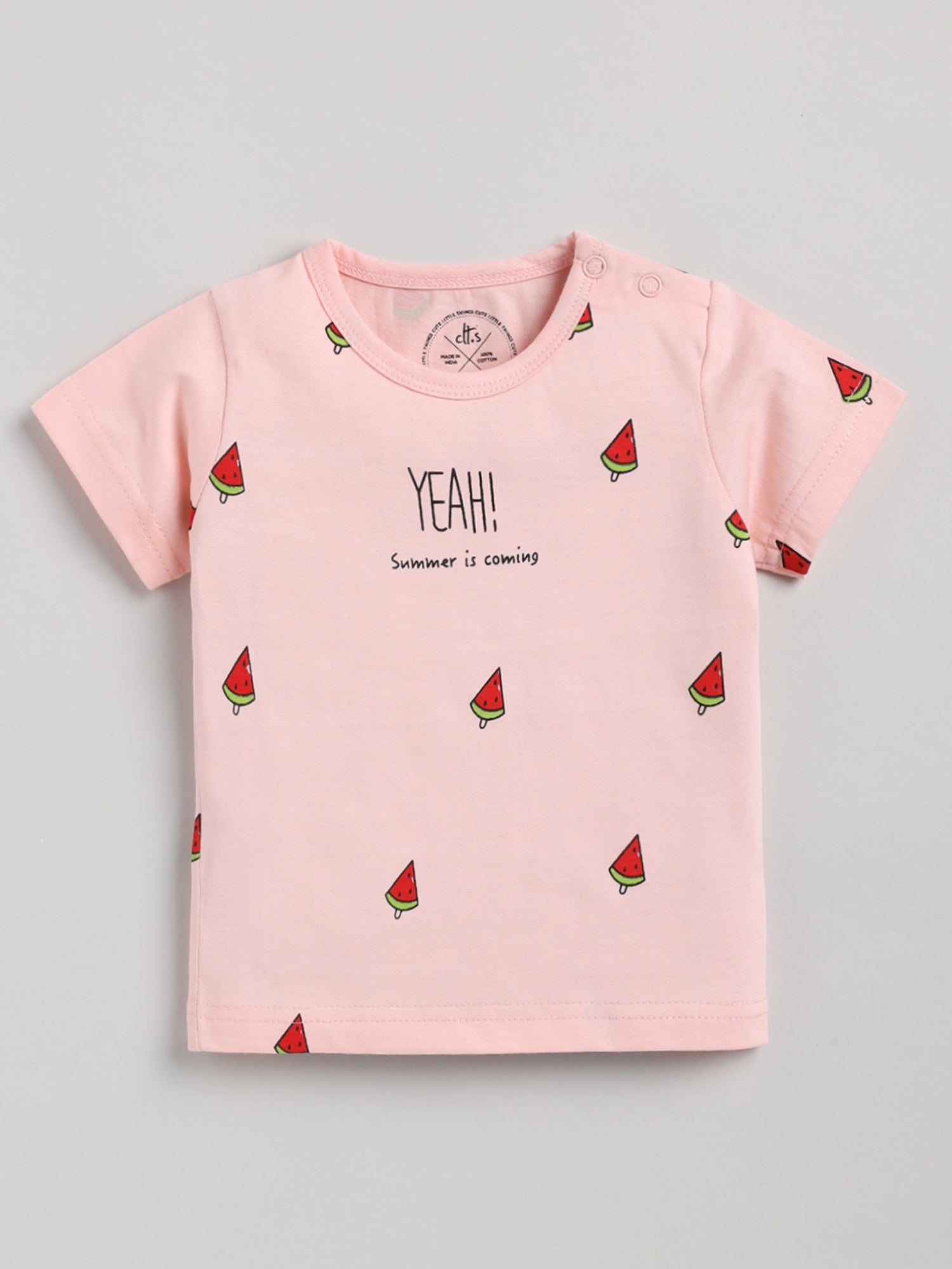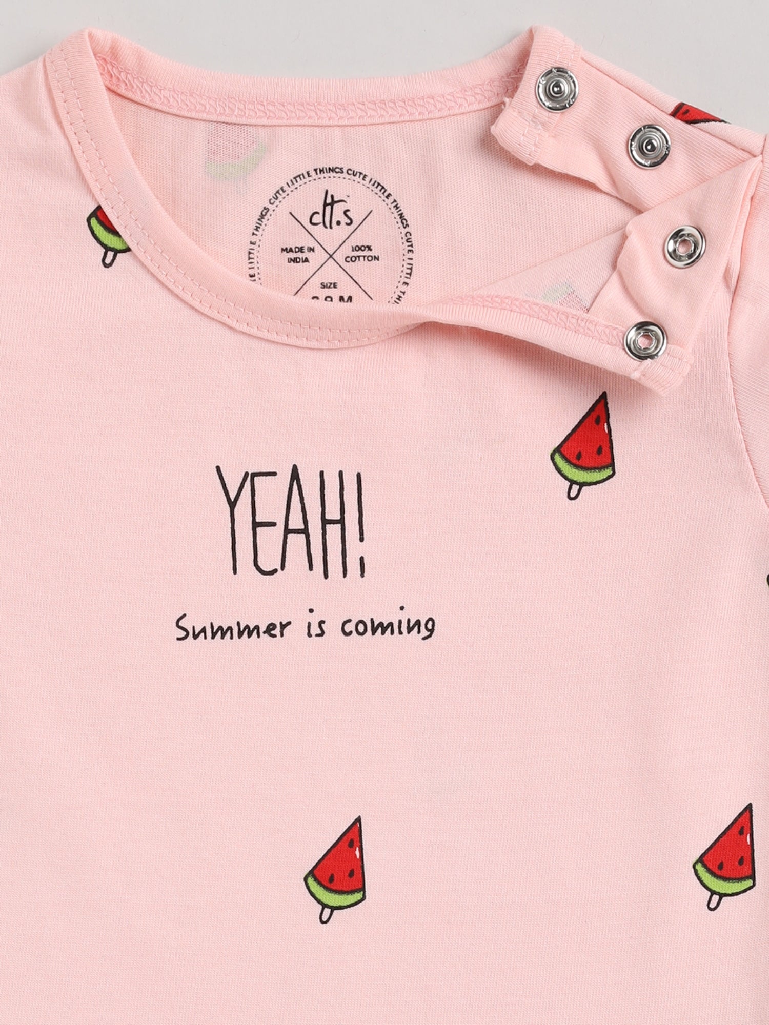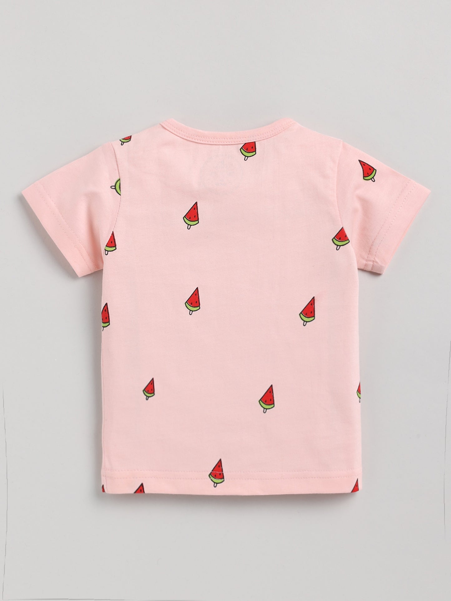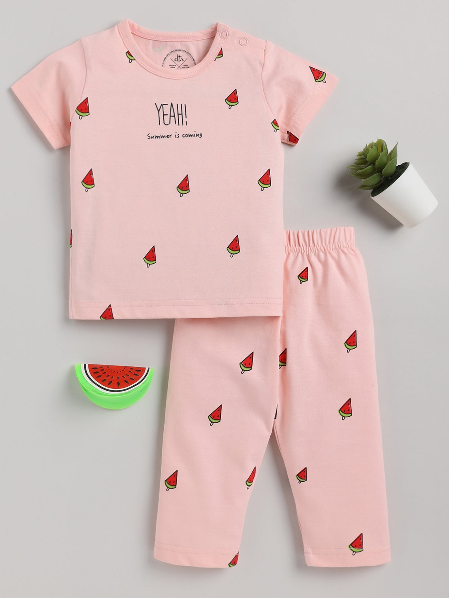Watermelon Print Pink Half Sleeve Cotton Nightwear Set