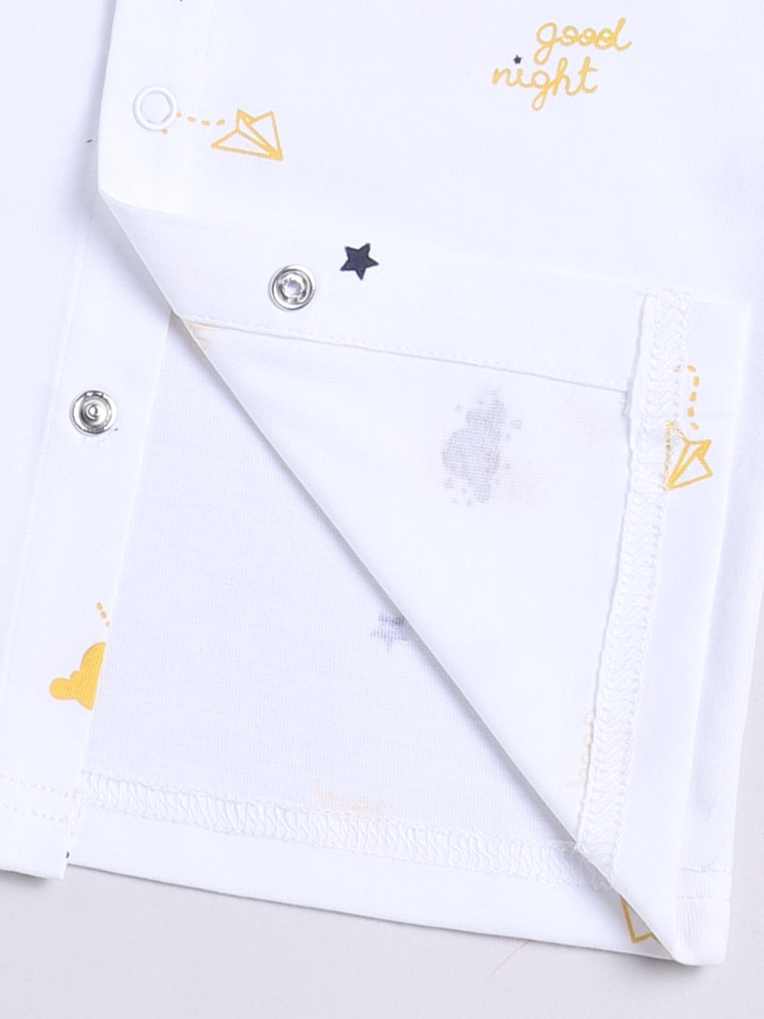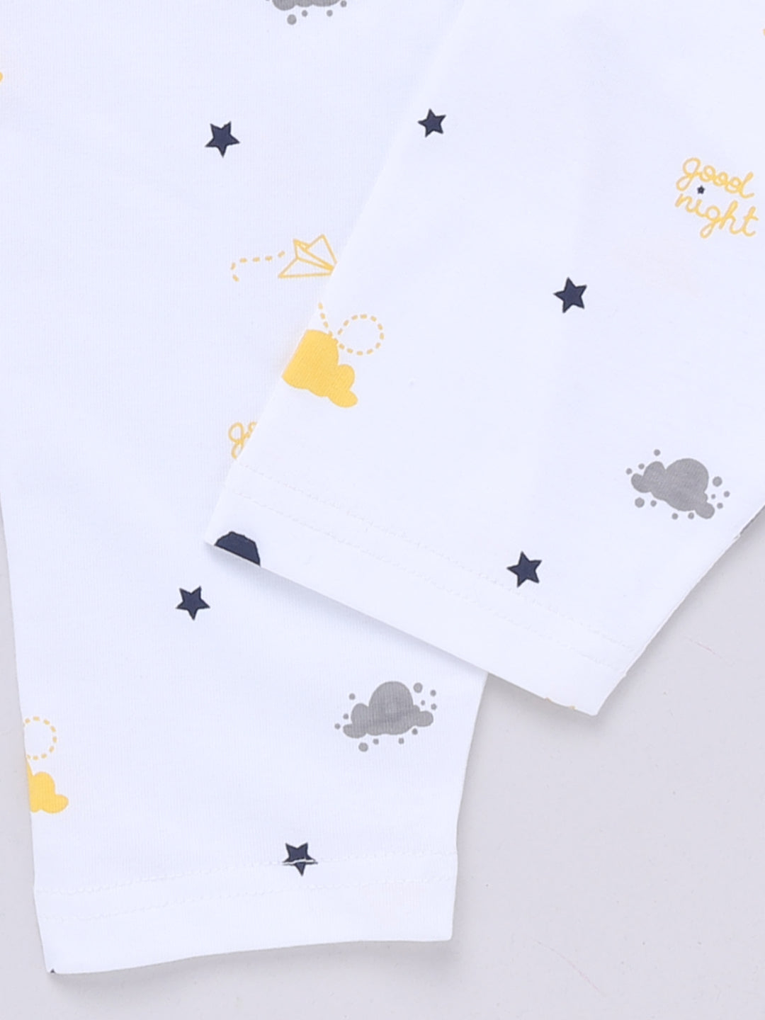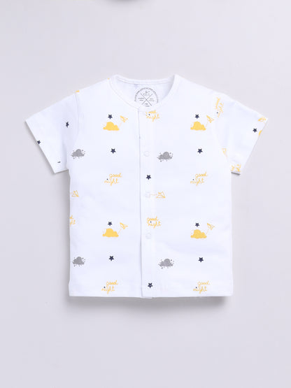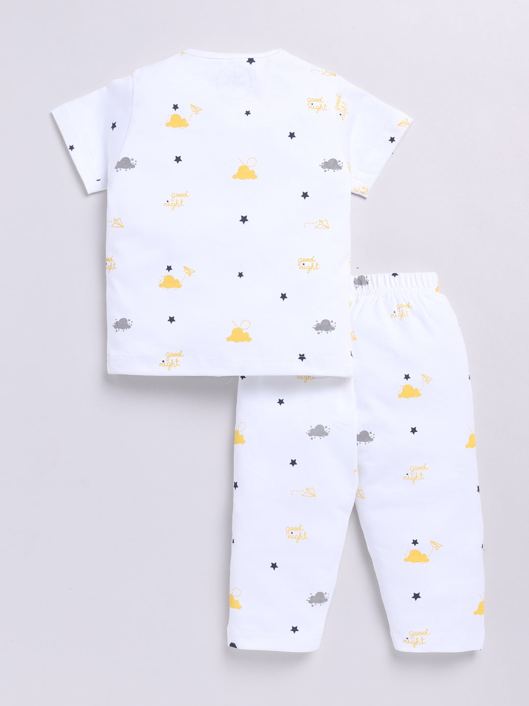 Sweet as cotton candy and just as soft, this 100% cotton nightwear set is made for summer evenings. The playful prints add a splash of fun, while the breathable fabric keeps things cool and comfy. Your child will drift off happy and relaxed in this dreamy bedtime outfit. This nightwear set has a Round Neck and a Graphic print and is made of cotton Knit fabric