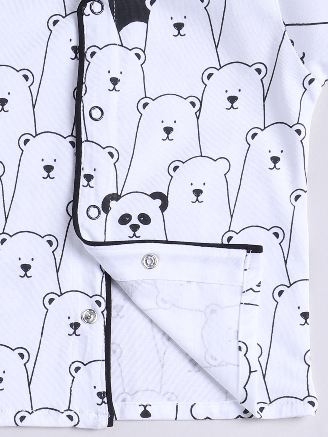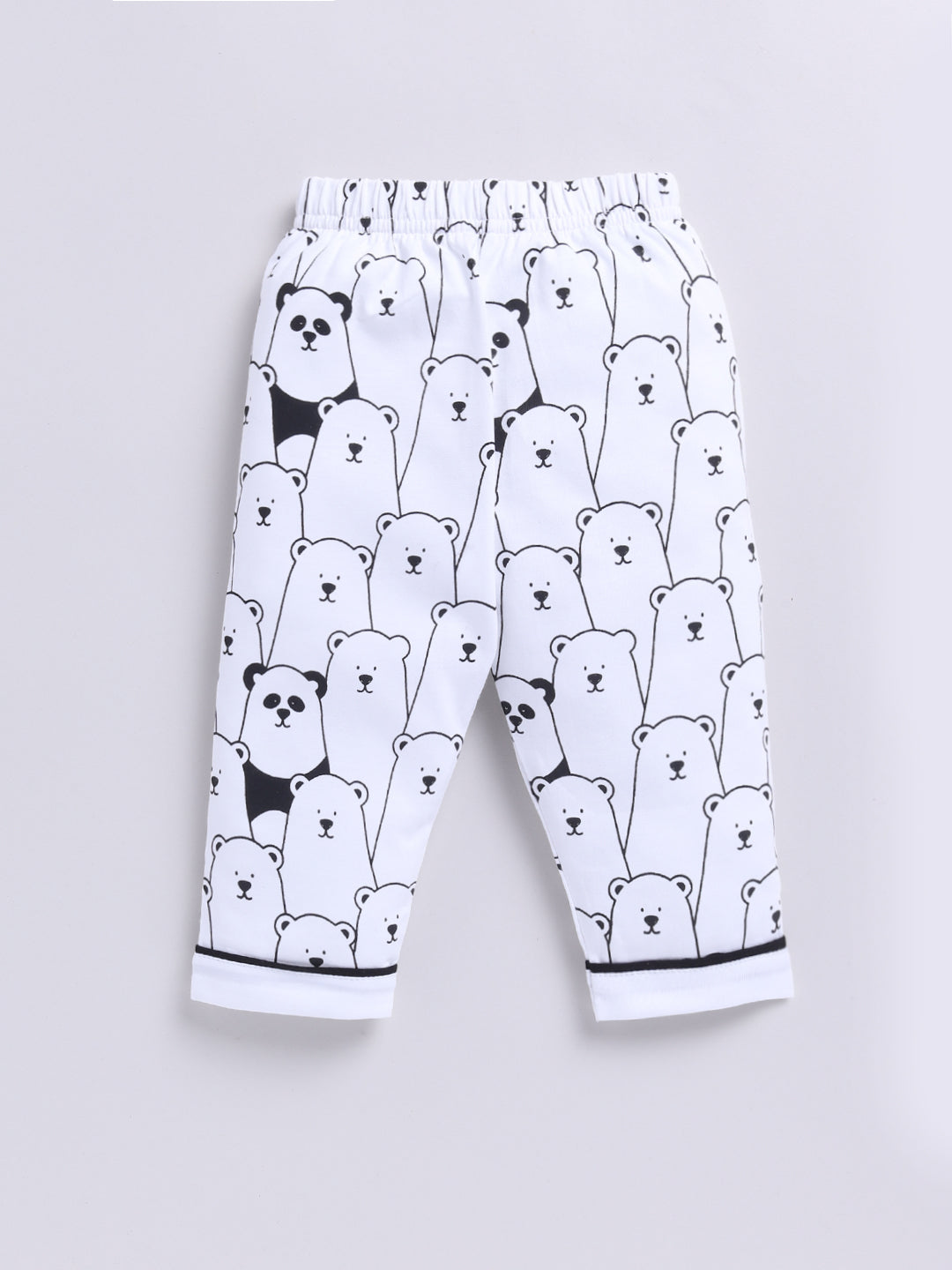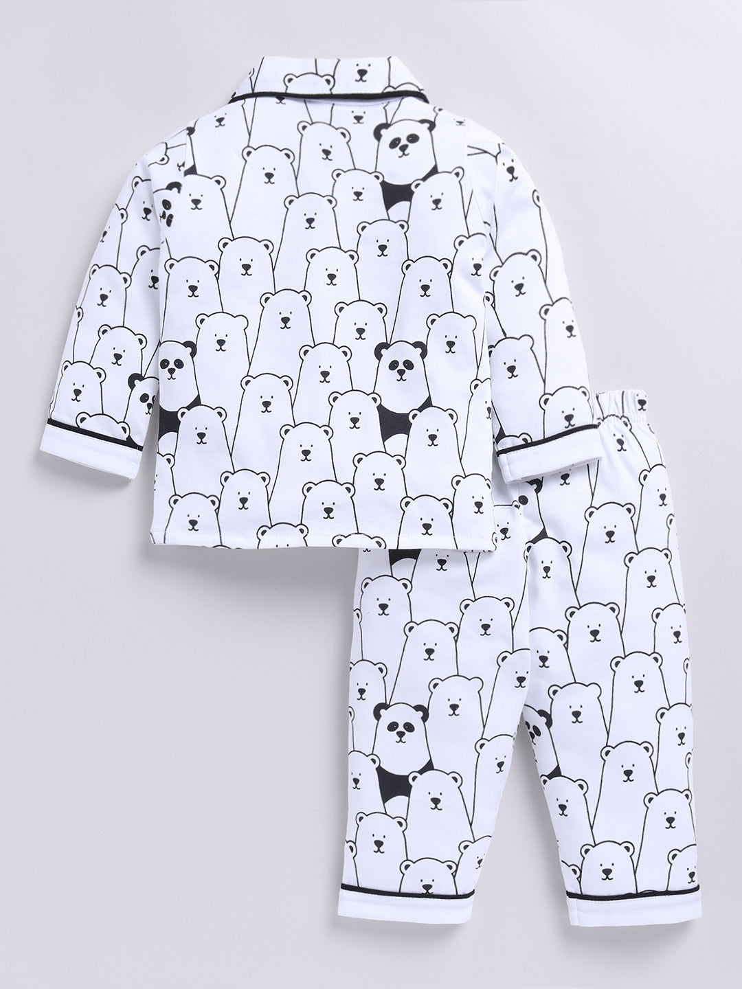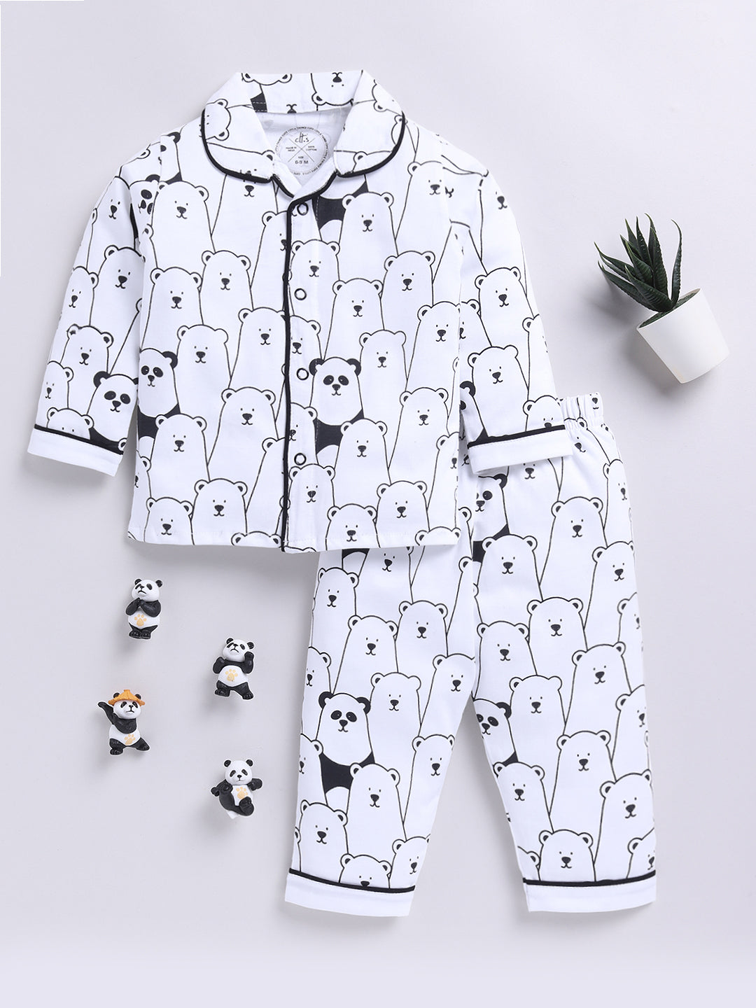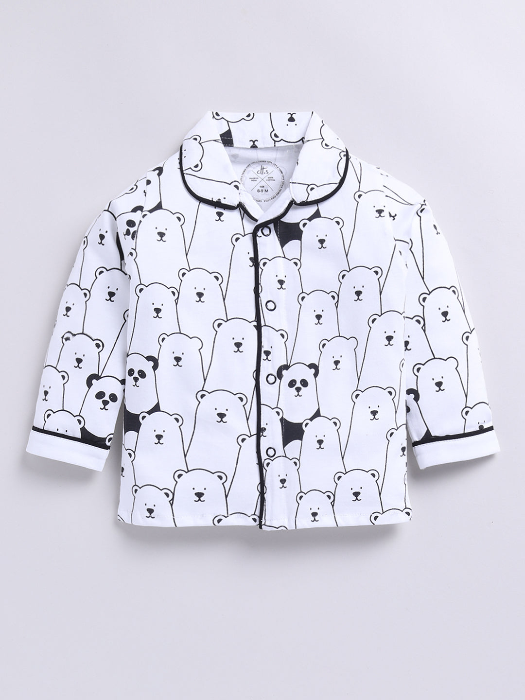 All-Night Comfort: Designed for all-night comfort, this kids' nightwear is made from breathable, soft fabric. It’s perfect for cozy nights of uninterrupted sleep. The White Full sleeve Night Suit is made of 100% Cotton and has a Shirt Collar with Animal print
